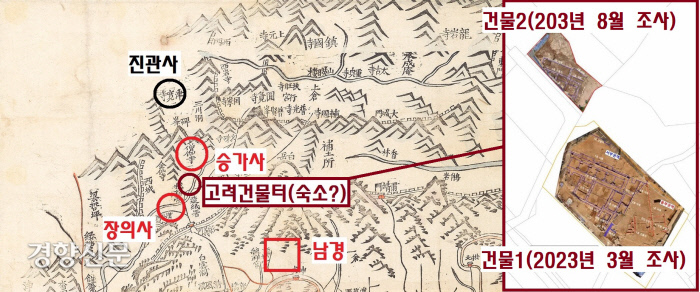 올해 발굴된 고려건물터는 장의사와 승가사 사이에 자라집고 있다.|수도문물연구원 제공