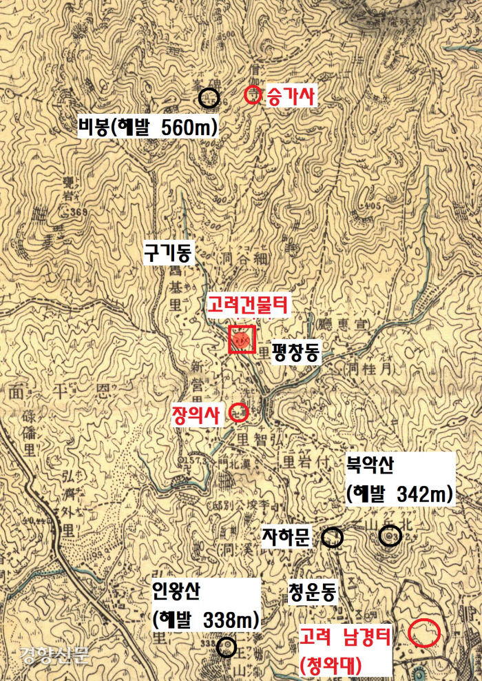 두 건물터는 기존 장의사 자리(세검정 초교)와 삼각산(북한산) 승가사 사이에 자리잡고 있는 건은 분명합니다.