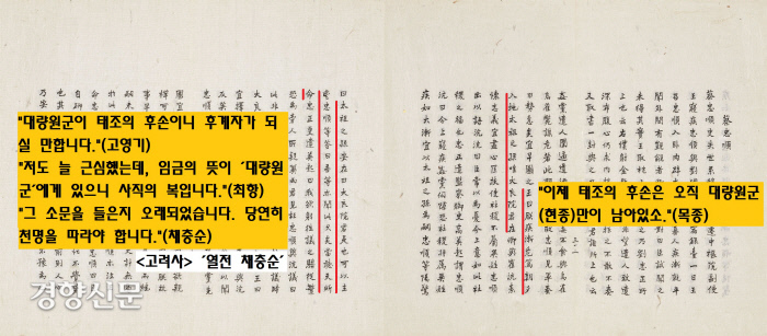 그때 성군의 자질이 ‘낭중지추’로 드러난 대량원군이 유일한 대안으로 꼽혔던 겁니다.
