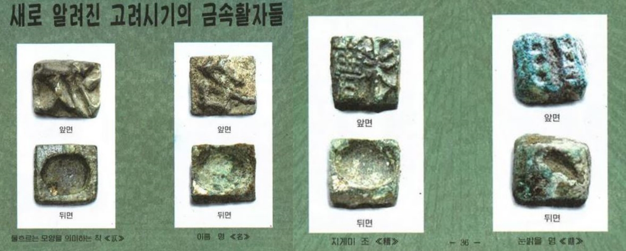 2016~17년 만월대를 단독 발굴하던 북한 조사단이 4점의 금속활자를 더 찾아냈다는 겁니다. ‘물흐르는 모양의 칙(水변에 仄)’, ‘지게미 조(糟)’, ‘이름 명(名)’, ‘눈밝을 명(明)’자였답니다.