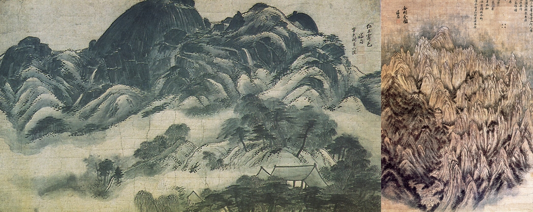 그 대표적 유물이 <정선 필 인왕제색도>(국보 216호)와 <금강전도>(국보 217호)이다. 이번에 기증된 <인왕제색도>는 겸재 정선(1676~1759)이 76살 때인 1751년(영조 27) 비온 뒤의 인왕산 모습을 그린 그림이다. 이 그림은 중국의 산수화를 그린 관념산수화와 달리 조선의 경치를, 조선의 화법으로 보고 그린 진경산수화의 대표작으로 꼽힌다. 이번 기증에는 빠진 <금강전도>는 1734년(영조 10) 정선이 내금강의 실경을 그린 작품이다. 역시 진경산수화풍이 잘 드러난 걸작이며, 정선의 금강산 그림 가운데에서도 가장 큰 작품이다.