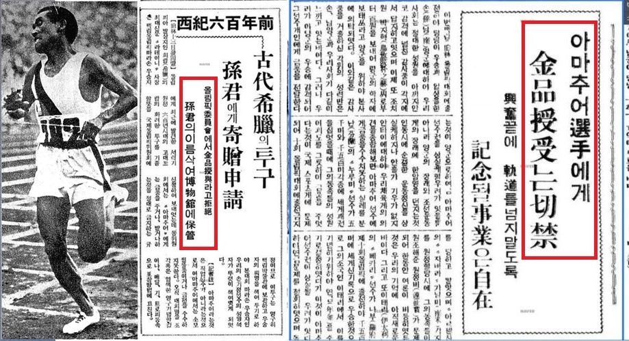 그러나 이 투구는 손기정 선수에게 전달되지 못합니다. 금품을 주고받는 행위가 올림픽정신(아마추어리즘)에 어긋난다는 IOC 규정 때문이었죠. 당시 동아일보는 “청동투구는 결국 우승자 ‘손기정’의 이름을 새겨 IOC와 독일올림픽위원회를 거쳐 베를린박물관에 기증됐다”고 전했습니다.