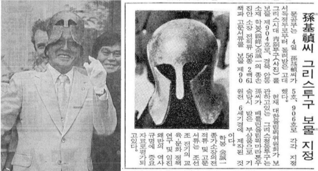 올림픽 발상지인 그리스 아테네에서 발행되는 브라디니 신문의 사장이 “마라톤 우승자인 손기정에게 주고 싶다”면서 고대 그리스의 청동투구를 국제올림픽위원회(IOC)를 통해 전했다는 겁니다.