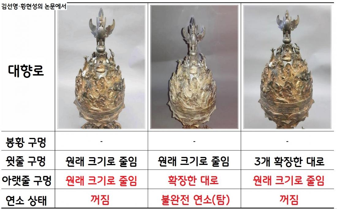 김선영·황현성, ‘분향실험을 통한 백제금동대향로 내부 대류특성 연구’, <보존과학지>35, 2019