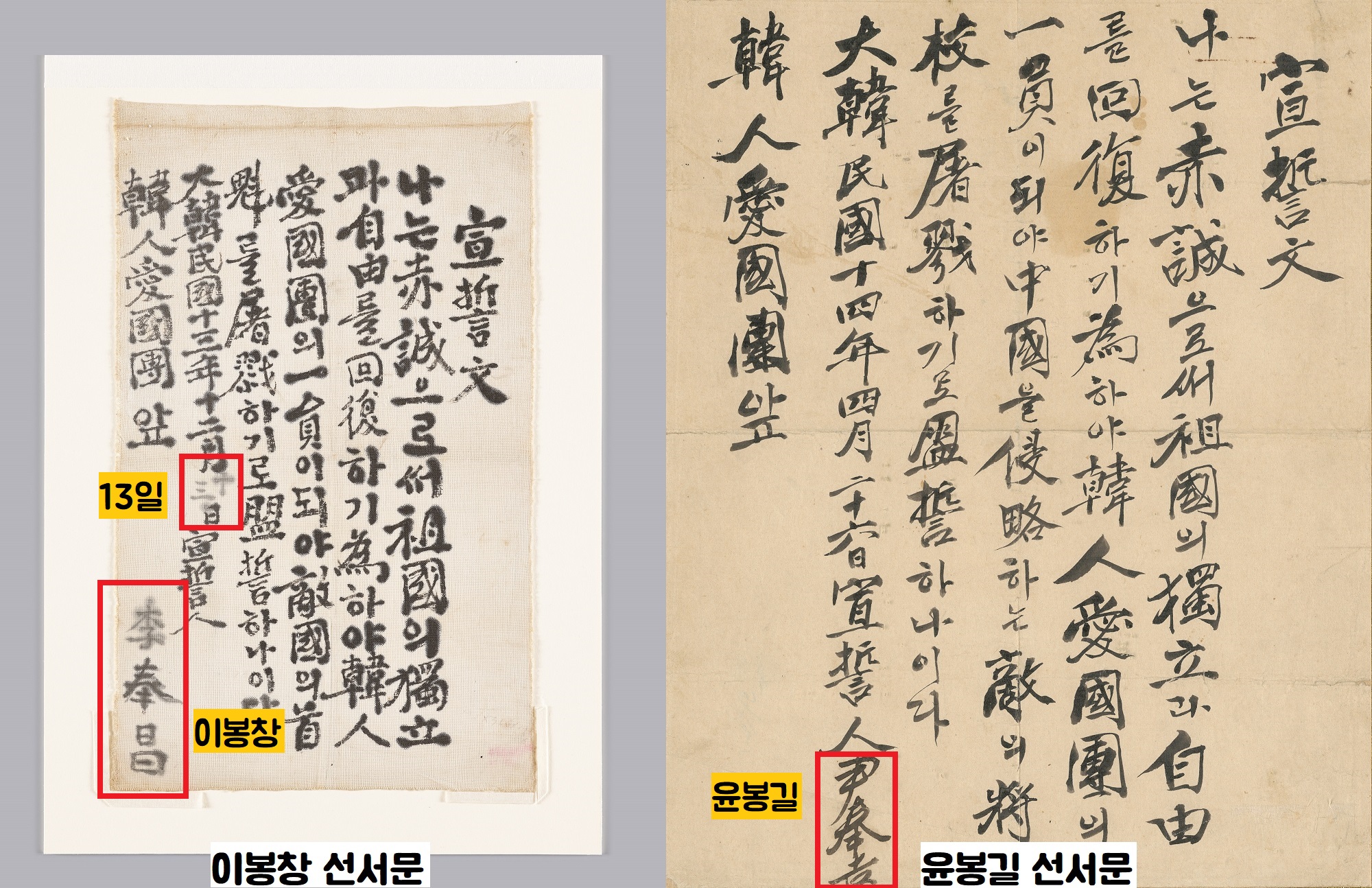 이미 보물로 지정된 윤봉길 의사(1908~1932)의 선서문과 내용이 비슷한 문서인데요. 물론 다른 문구가 있어요.
