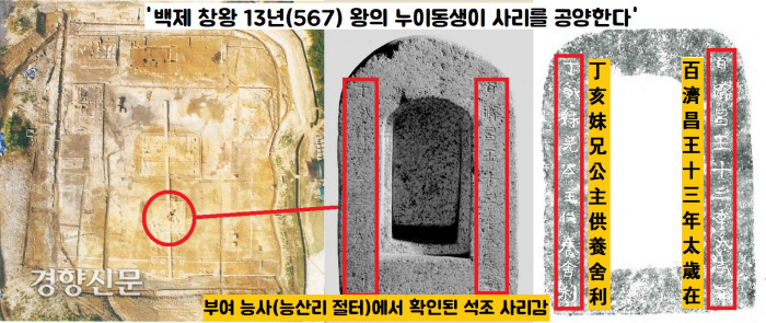 그러나 신하들은 “잘못을 뉘우쳤으면 됐다”면서 “대신 백성 100명을 출가시키고, 왕은 갖가지 공덕을 이루라”고 달래죠. 출가를 단념한 창왕은 잇달아 사찰을 창건하고 죽은 이의 혼을 달래며 실추된 왕실의 권위를 회복하고 정국을 안정시키려고 애씁니다. 1995년 부여 능산리 절터에서 그 증거가 나왔죠. 출토된 사리감에서 ‘창왕 13년(567), 왕의 누이(성왕의 딸)가 사리를 공양한다(百濟昌王十三年太歲在 丁亥妹兄公主供養舍利)’는 명문이 새겨져 있었습니다.