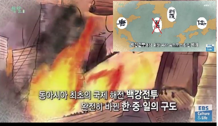 그런 우여곡절을 겪은 뒤인 663년 8월27일 드디어 신라와 당나라가 한편이 되고, 백제부흥군과 왜국이 또 한편이 되어 벌인 건곤일척의 국제전이 백강에서 펼쳐지는데요.