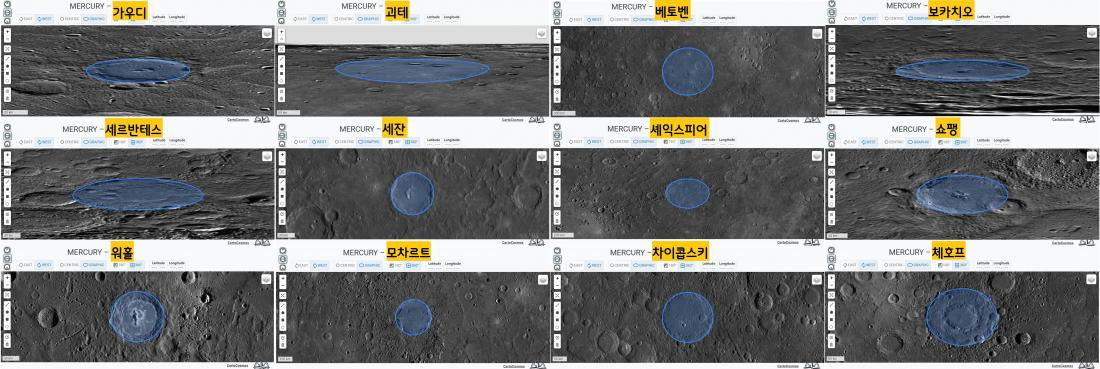 ‘수성의 크레이터(충돌구)에는 뚜렷한 업적을 세운 아티스트, 음악가, 화가, 작가 등의 이름을 짓는다’는 국제천문연맹의 행·위성 명명 규정에 따른 것이다.