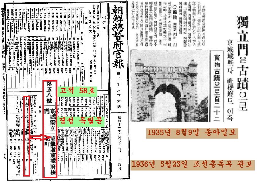 저는 일제강점기 문화재지정 관련 자료를 들춰보다가 뭔가 이상한 대목을 발견한 적이 있습니다. 일제가 1935년 서울 독립문을 고적(제58호)로 지정했다는 기사인데요. 그것도 조선총독부 정무총감인 이마이타 기요노리(今井田淸德)가 주재하는 회의에서 확정했다는 겁니다.
