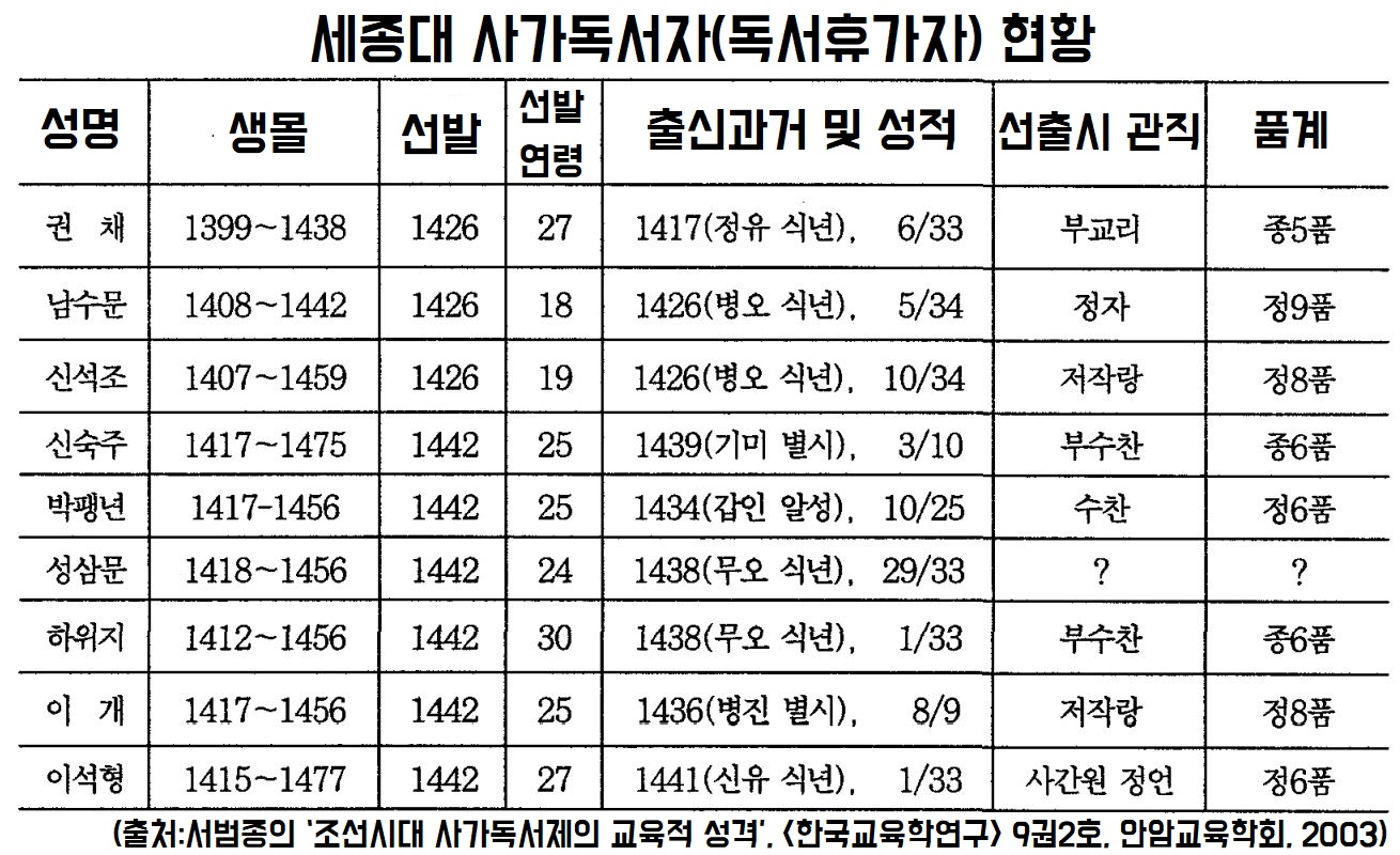 서범종, ‘조선시대 사가독서제의 교육적 성격’, <한국교육학연구> 9권2호, 안암교육학회, 2003