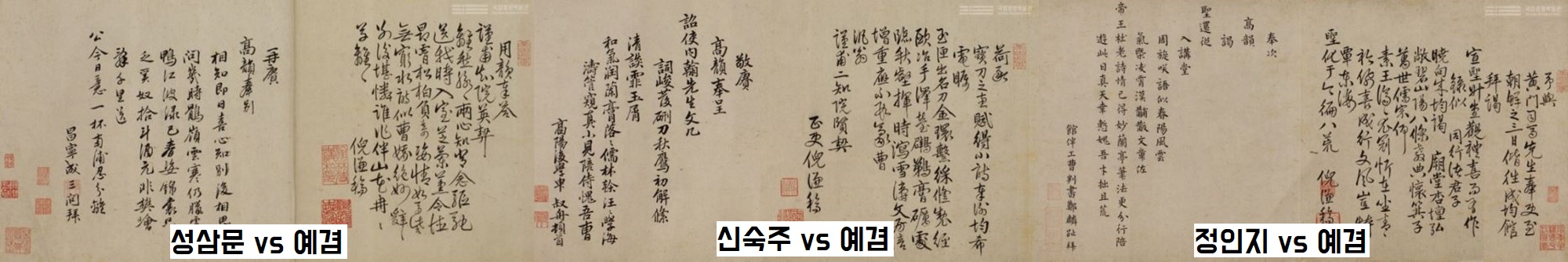 또 서거정(1420~1488)의 <필원잡기>는 “신숙주가 예겸에게 전한 화답글은 초나라 애국시인인 굴원(기원전 343~기원전 278)의 ‘초사’와 비견된다”면서 “예겸의 문장 실력과 백중세”고 극찬했다.