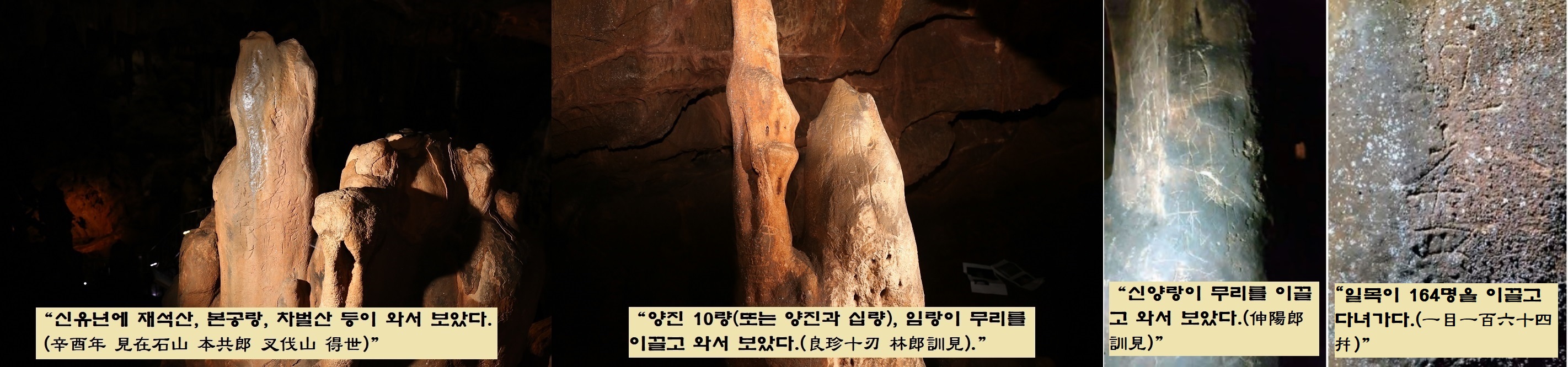 또한 낙서 중에는 ‘향도(香徒)’라는 단어가 두번 보이는데요. ‘향도’는 신앙집단을 의미하기도 하지만 김유신(595~673)의 ‘용화향도(龍華香徒)’ 처럼 화랑도의 별칭일 수도 있습니다. 이로 미루어 보면 성류굴은 화랑이나 승려 등이 찾아오는 유명한 명승지이자 수련장소였음을 알 수 있습니다.