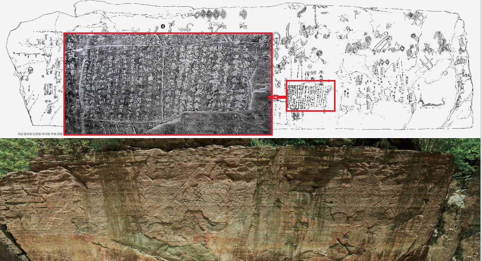 이 가운데 다섯 오(五)자를 마치 모래시계처럼 쓴 낙서가 더러 보이는데, 이런 필체는 울진 봉평리 신라비(524년 제작)의 ‘오(五)’자와 흡사했습니다. 낙서의 연대를 6세기 초반, 즉 삼국시대로 볼 수 있는 여지를 남긴 겁니다.