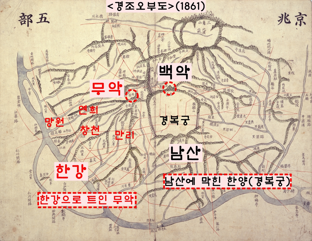 안산에 올라 무악땅(신촌·연희·망원·만리동 일대)을 살피던 지관들은 “한양보다 오히려 탁 트인 무악이 낫다”고 주장했다. 이에 태종은 “부왕(태조) 때는 ‘한양(경복궁)이 좋다’고 하던 자들이 이제와서는 왜 무악을 주장하냐”고 질책한 뒤 발길을 돌렸다.