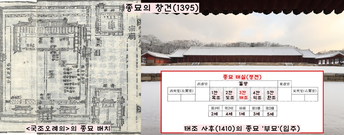 조선 건국 3년 뒤인 1395년(태조4) 창건됐다. 왕실은 ‘5묘제’에 따라 개국시조(태조)와, 4대 조상(고조·증조·조·부)의 신주를 종묘에 모셨다.