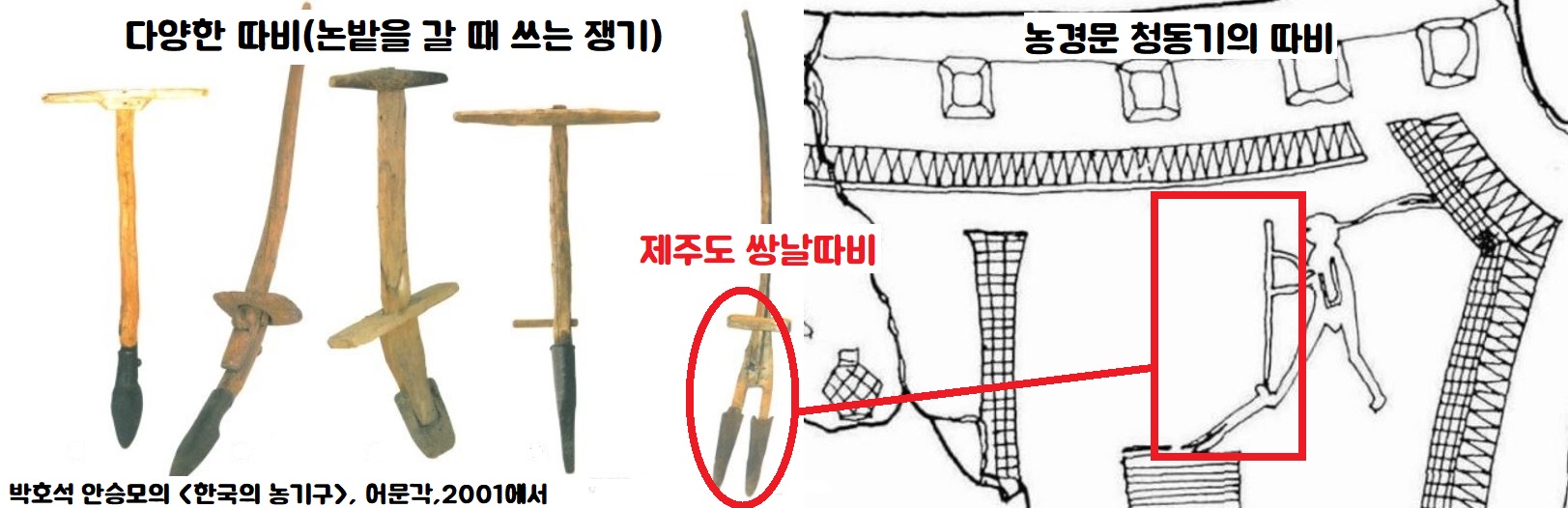 이것은 남자가 밭에서 따비질(쟁기질) 하는 형상을 표현한 것입니다.