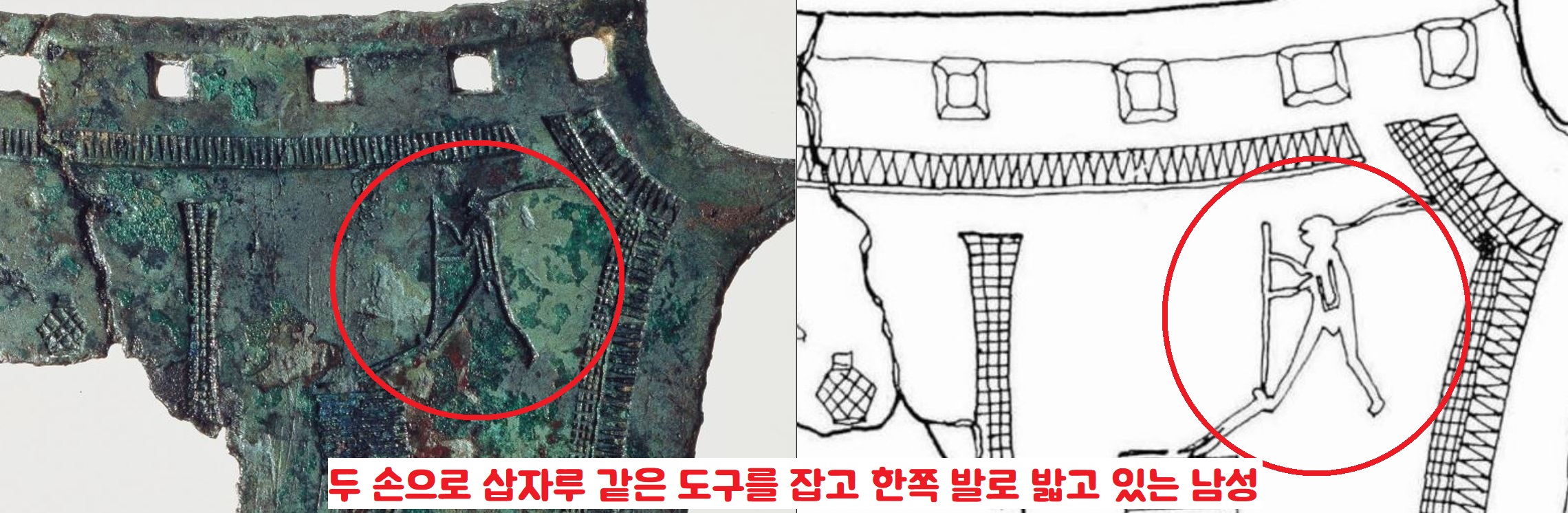 문제적 인물은 오른쪽 위에 새겨진 사람이었습니다. 이 사람은 두 손으로 삽자루를 잡고 한쪽 발은 삽을 밟고 있었습니다.