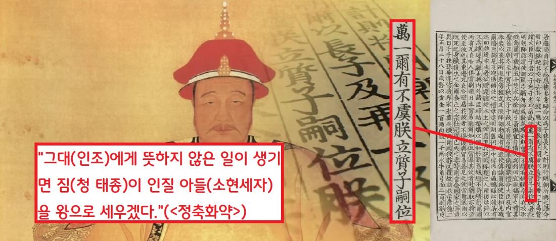“…그대(인조)에게 뜻하지 않은 일이 일어나면 짐(청 태종)이 인질 아들(소현세자)을 차기 왕으로 세우겠다.”
