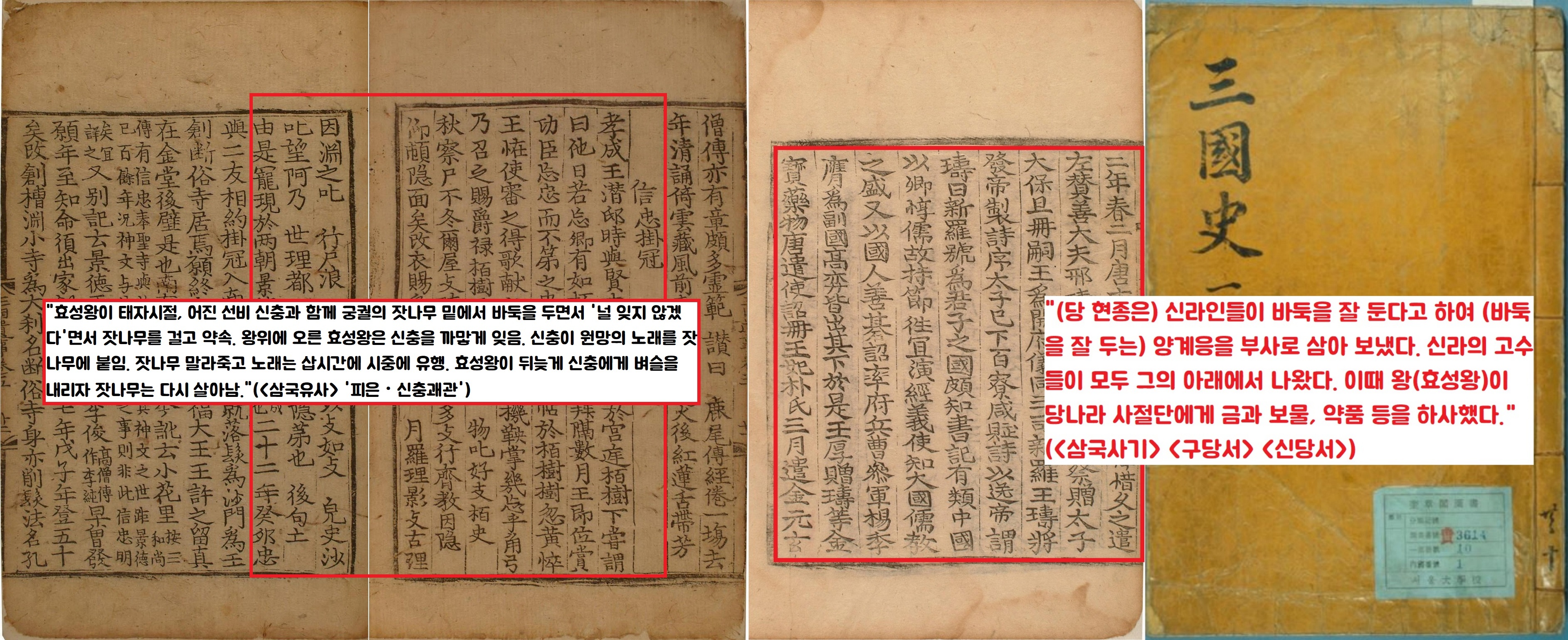 특히 효성왕(737~742) 연간의 기록이 눈에 띄던데요. <삼국유사> ‘피은·신충괘관’조를 볼까요. 즉 효성왕이 태자시절, 어진 선비 신충과 함께 궁궐의 잣나무 밑에서 바둑을 두면서 굳게 약속했죠.