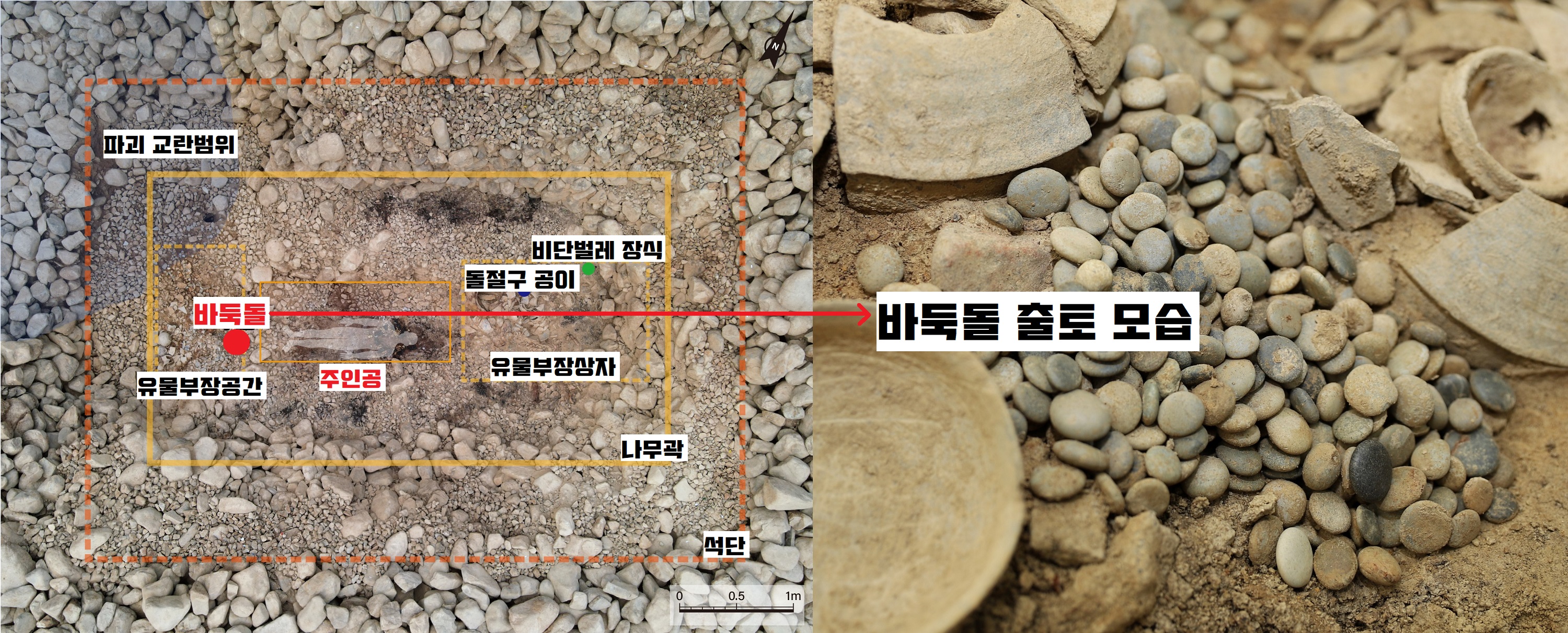 그것은 공주의 발치 아래에 부장된 토기군 사이에 모여있던 바둑돌(추정)이었습니다. 다 세어보니 무려 863점이나 되었습니다.