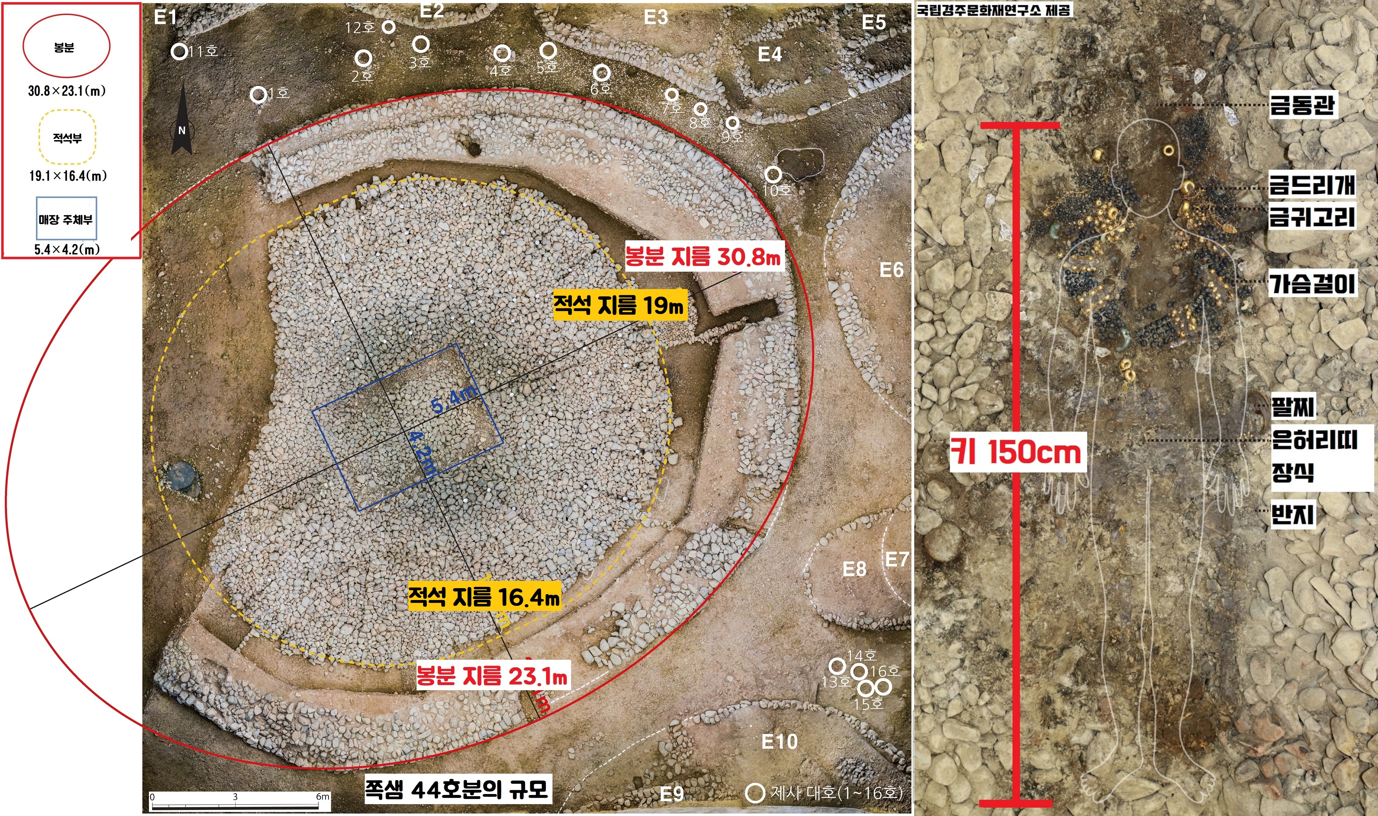 특히 주목을 끄는 쪽샘 고분 중에는 2014년부터 조사가 이어진 44호분(돌무지덧널무덤·적석목곽분)이 있는데요.