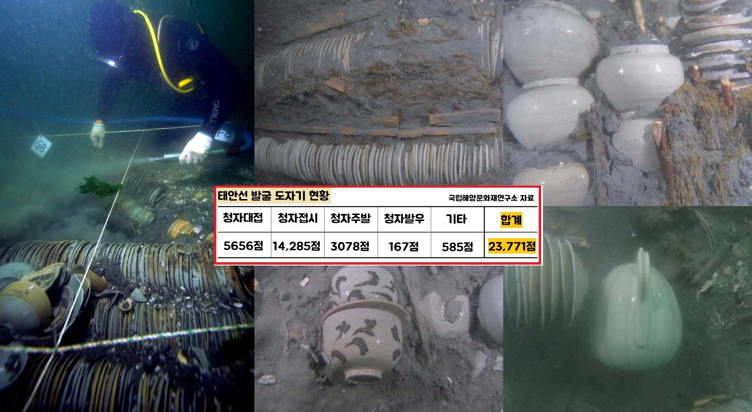 2만3815점의 인양유물 가운데 2만3771점이 자기였구요. 절대다수가 12세기에 제작된 청자였습니다.