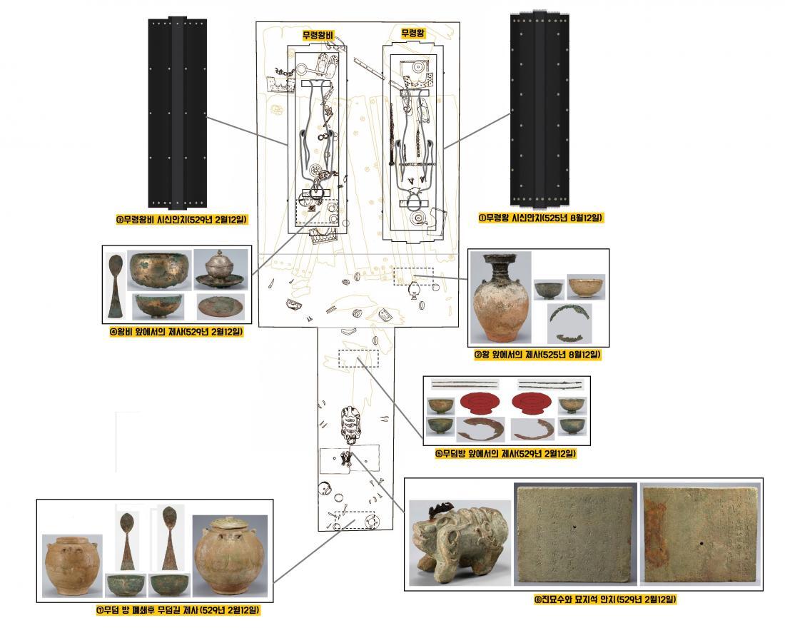 새삼 무령왕릉 유물의 출토상황을 정리하면 무덤방 안밖에서는 최소 4차례에 걸쳐 제사를 올린 것 같다.