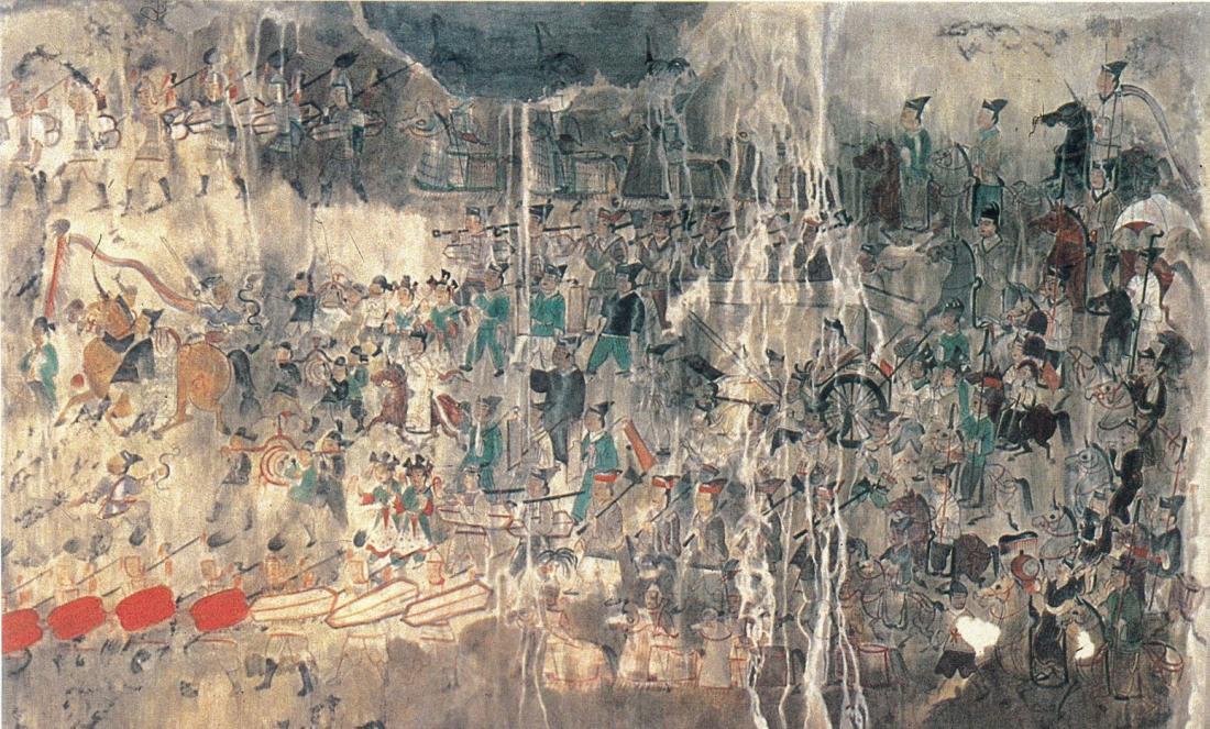 고구려의 장례풍속을 나타내주는 안악3호분 장례행렬도. 고인의 장례행렬에 64명에 달하는 악대와 함께 춤추는 사람들이 동원됐다.|고구려유적유물도감편찬위의 ‘<고구려 유적유물도감(5·6)-고구려편3·4>, 1990’에서