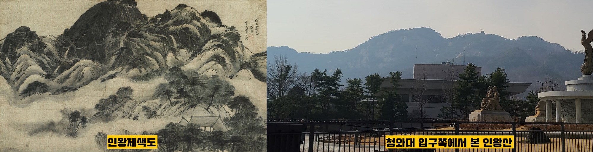일부 연구자들은 한발 더 나아가 ‘인왕제색도’의 오른쪽에 그려진 기와집을 육상궁(지금의 청와대 옆 칠궁) 뒷담쪽에 있던 이병연의 집이라고 추정했습니다. 그래서 지루한 장맛비 끝에 맑게 갠 인왕산의 바위 모습처럼 죽어가던 절친의 극적인 쾌차를 기원한 그림으로 해석할 수 있다는 거죠.