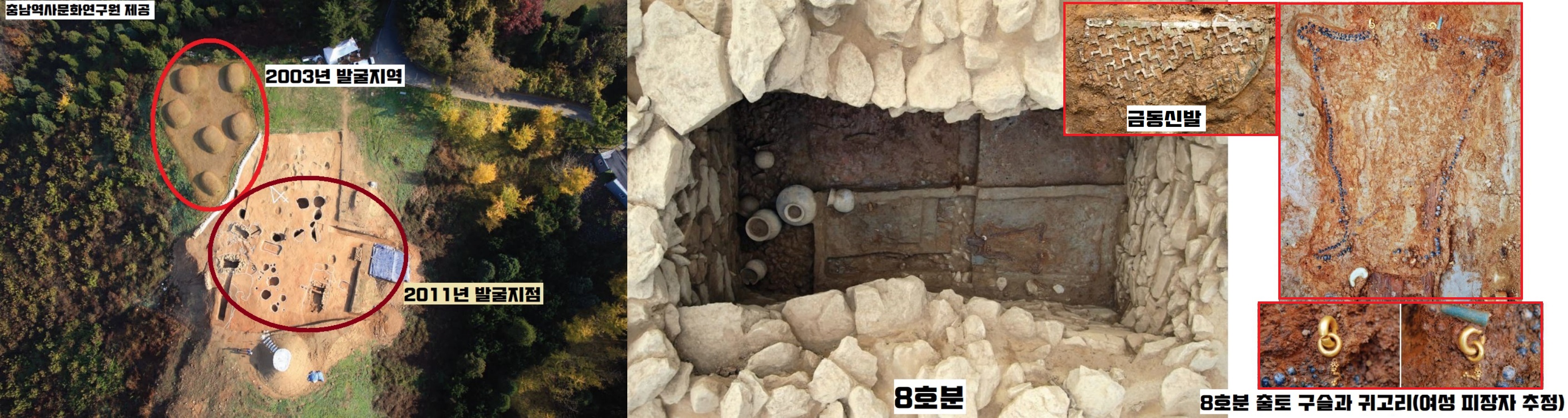그렇다면 8호에 묻힌 여성은 누구일까요. 당시 발굴을 책임진 이훈 충남역사문화연구원 실장(현 공주대 연구교수)은 “이 여성이 혹시 백제 중앙에서 시집 온 분일 수도 있다”고 조심스럽게 추정했습니다. 백제 중앙에서 온 분이라면 백제 공주일 수도 있다는 거죠. 이 역시도 고고학 발굴성과에 따른 그럴듯한 상상입니다.