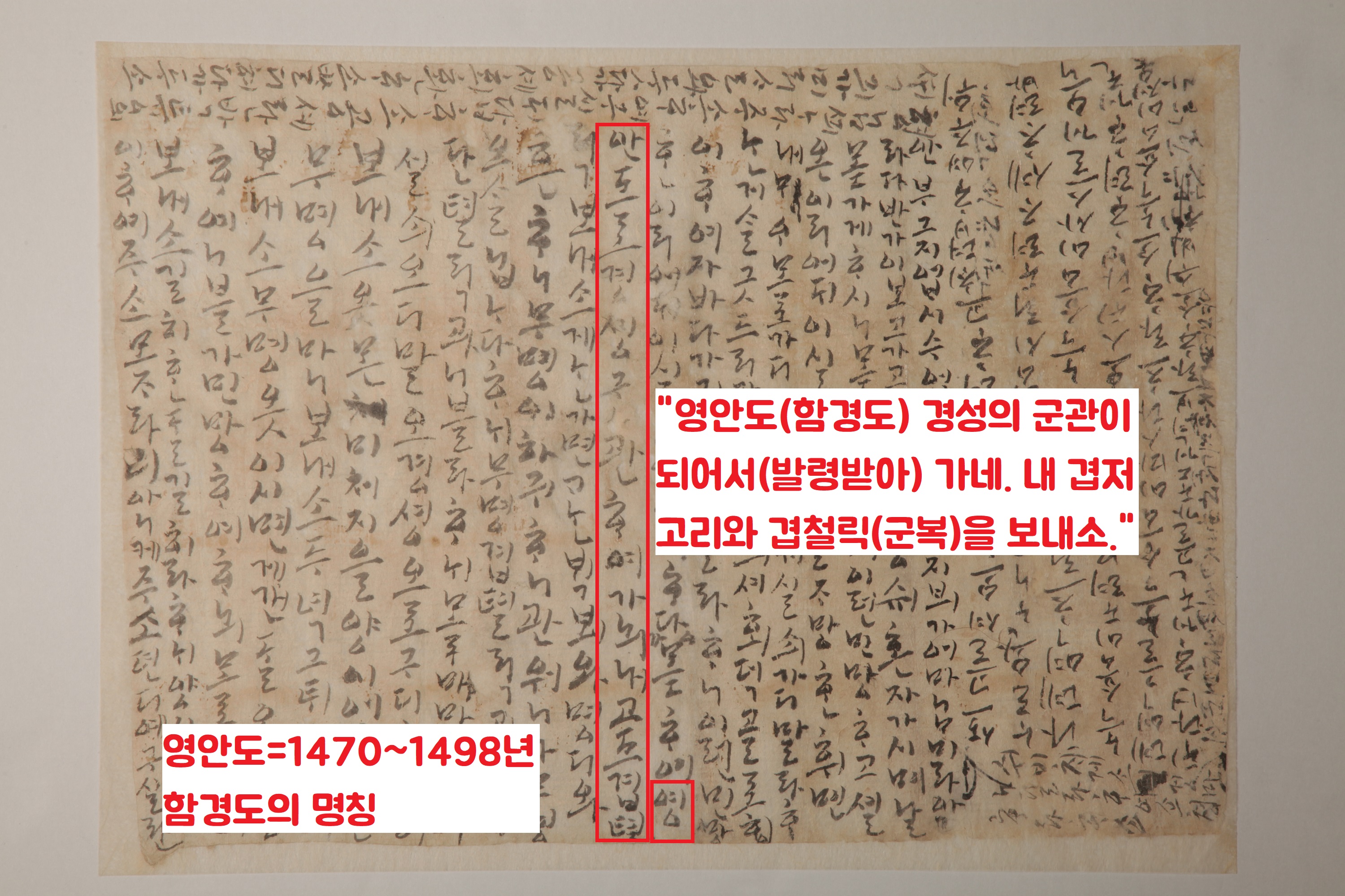우선 편지에 등장하는 ‘영안도’(함경도)에 주목했다. <성종실록>과 <연산군일기> 등에 따르면 함경도는 1470년(성종 1) 영안도로 명칭이 바뀌었다가 1498년(연산군 4) 다시 함경도로 회귀된다.