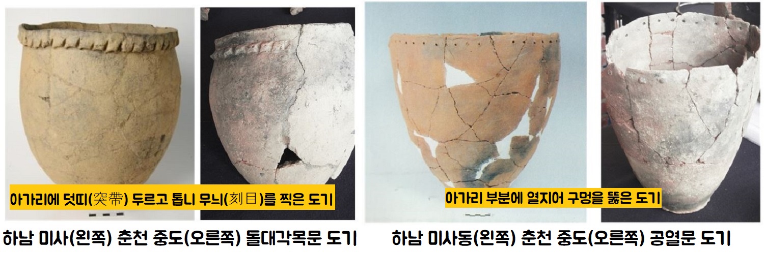 그런데 이 중도 유적의 청동기 유구 가운데는 미사동 출토품들과 유사한 도기들이 확인된다.