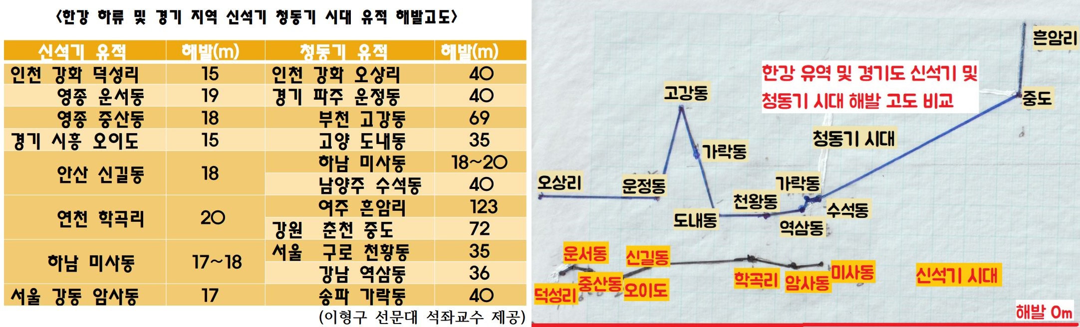 왜냐면 기원전 2000년 무렵부터 해수면이 지금보다 2m 이상 높아졌다는 자료가 있기 때문이다. 지금도 밀물 때와 겹치는 여름철 홍수기에 한강 수위가 8m 이상 상승하지 않는가. 지금보다 해수면이 2m 이상 높아지는 청동기 시대에는 암사동·미사동 같은 한강 유역은 사람이 살 수 없는 곳으로 바뀌었을 것이다.