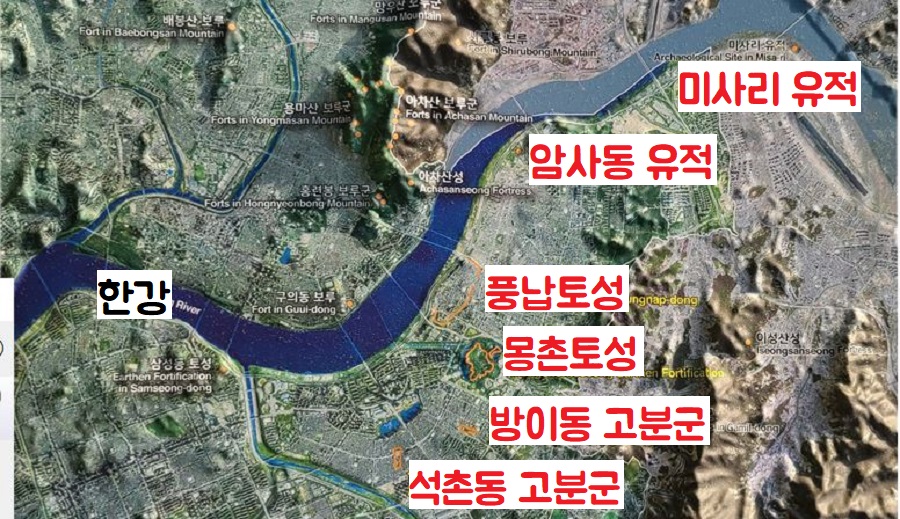 이곳에 남한강·북한강 유역에 살던 사람들이 다시 강을 타고 남으로, 남으로 내려오기 시작한다. 그들은 수천년전 그들의 선조가 살았던 곳에서 다시 삶의 터전을 잡는다. 그 증거가 미사동 등지에서 출현한 이른바 ‘춘천 중도식 토기’이고, 풍납동에서 확인된 이른바 ‘풍납리식토기’이다. 고향에 돌아온 이들은 기원전 18년 고구려에서 내려온 새로운 세력(온조왕)과 함께 왕국(백제)을 세운다. 그들의 도읍지가 된 곳이 암사동과 미사동의 남쪽 구역인 풍납동이다. 다시 정리해보자.