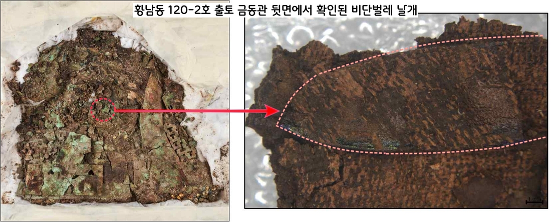 “이건 비단벌레 날개 아닌가.” 지난해(2024년) 12월이었다. 경주 황남동 120-2호에서 출토된 금동관을 정리하던 중 수상한 물체가 보였다.