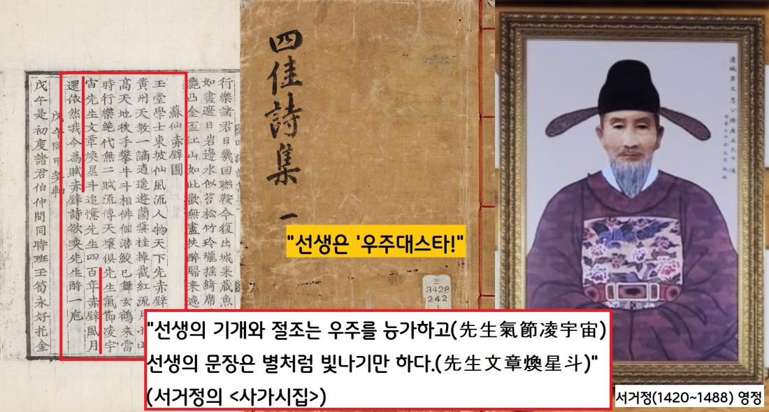 “선생의 기개와 절조는 우주를 능가하고(先生氣節凌宇宙) 선생의 문장은 별처럼 빛나기만 하여라.(先生文章煥星斗)”