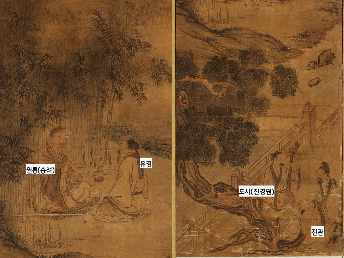 <서원아집도>에는 도사(진경원)가 비파를 연주하고 승려(원통)가 설법을 전하는 내용이 그려져있다. |국립중앙박물관 소장