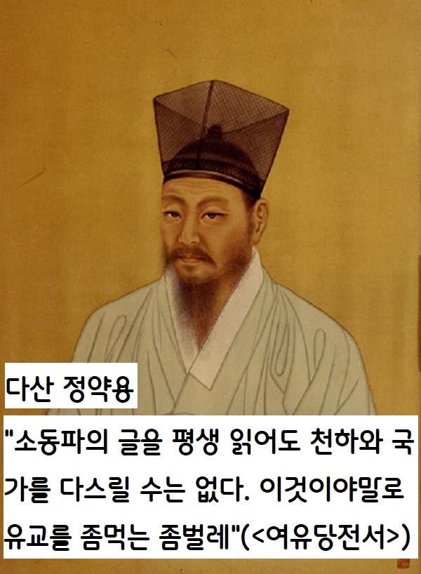 이러니 성리학의 입장에서 소동파를 이단으로 비판하는 이들도 있었다. 조선조 개국공신 정도전(1342~1398)은 “소식은 이단의 논리를 펴서 예법을 사라지게 했다”(<고려사> ‘열전 정도전’)이라 했다. 다산 정약용(1762~1836)은 “소동파 등의 글은 평생 읽어도 천하와 국가를 다스릴 수는 없으니 유교를 좀먹는 좀벌레”(<여유당전서> 제1집 시문집 권11 오학론3)라고 비판했다.