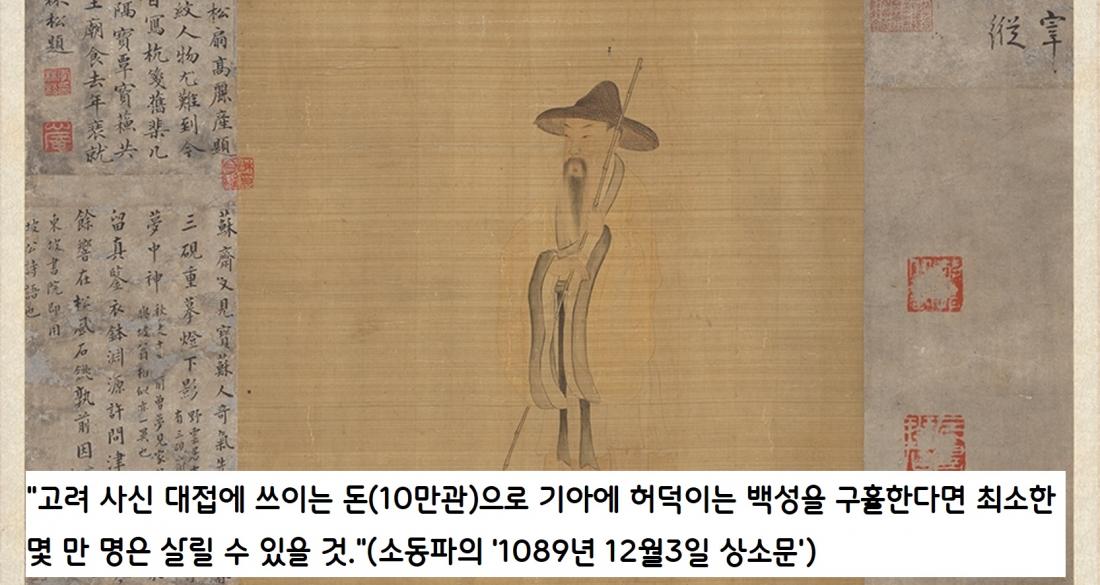 소동파는 “고려 사신 대접에 쓰이는 돈(10만관)으로 기아에 허덕이는 백성을 구휼한다면 최소한 몇 만 명은 살릴 수 있을 것”(1089년 12월 3일의 상소문)이라 주장했다.