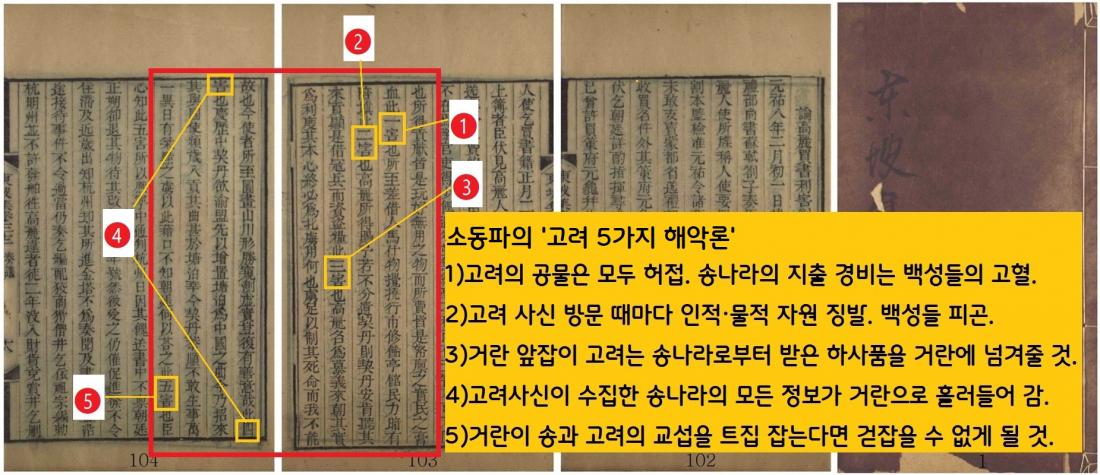 소동파는 “고려 사신을 접대하는 비용이 10만 관도 넘는다”면서 ‘고려와 절대 상종할 수 없는’ 5가지 이유를 조목조목 밝혔다.