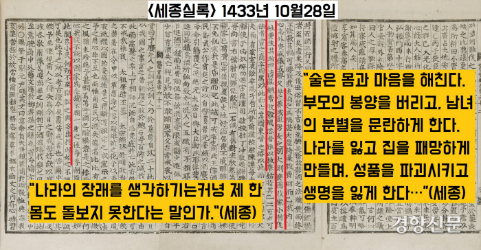 1433년(세종 15) 10월28일이었습니다. 세종이 술(酒)의 폐해와 훈계를 담은 글을 발표합니다.