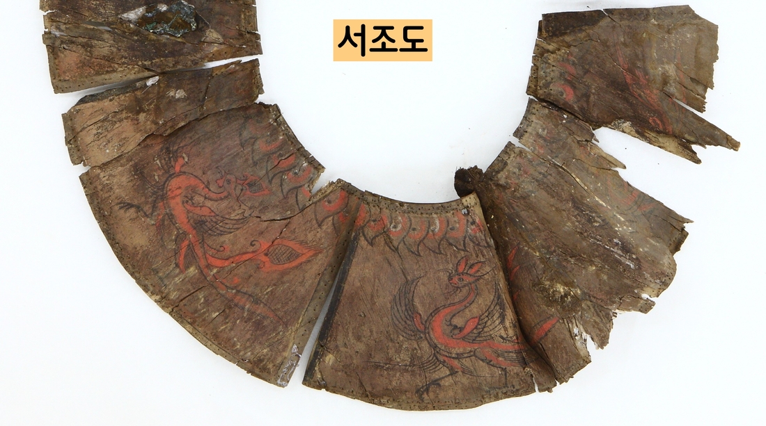 ‘서조도’는 5~6세기초 신라 고분의 채화칠기에서 상당수 보이는 그림이다. 그중 사람머리 형태의 새는 백제 무령왕릉 은제 탁잔과 금동대향로, 고구려의 덕흥리 고분·무용총·삼실총·천왕지신총 등에서도 등장한다.