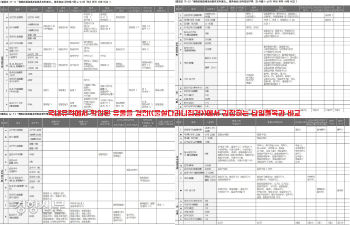 그렇다면 지금까지 국내유적에서 확인된 유물을 경전(<불설다라니집경>)에서 권장하는 납입물목과 비교하면 어떨까요. 마침 최태선 중앙승가대 교수가 정리해놓은 논문이 있네요.
