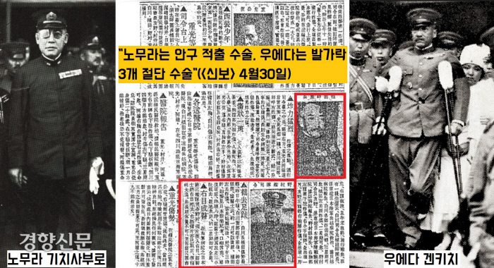 폭발 직후 눈알이 빠진 제3함대 사령관 노무라 중장은 결국 실명하고 말았습니다. 제9사단장인 우에다 중장은 발가락 4개가 완전히 부러지는 상처를 입었고요. 상하이 총영사인 무라이와 거류민단 서기장인 도모노는 경상을 입었습니다.