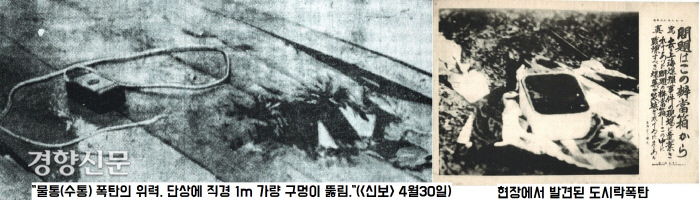중국신문인 <신보>는 “알루미늄제 군용보온병으로 위장된 특수폭탄이었다…단상 왼쪽 앞에는 직경이 1m 가까운 구멍이 뚫렸다. 화약을 담은 알루미늄통은 폭발과 함께 엄청난 파편이 되어 가공할 살상력을 보여주었다”고 전했습니다.