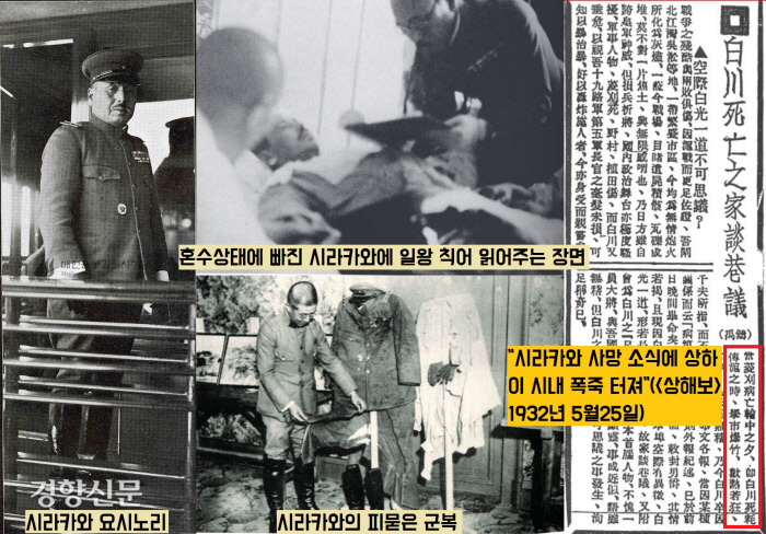 23일 새벽 시라카와는 완전히 의식을 잃고 혼수상태에 빠졌습니다. 그러자 일본 본토의 일왕까지 나서 난리를 피웠습니다. 일왕 히로히토(裕仁)는 시라카와에게 ‘사주(賜酒·임금이 공을 세운 신하에게 내리는 술)’와 함께 욱일 대훈장과 남작의 작위까지 주었습니다. 5월24일 혼수상태에 빠진 시라카와의 병상에서 기묘한 의식까지 펼쳤습니다.