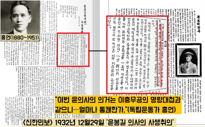당시 상하이에서 활약한 독립투사 한형석(1910~1996)도 “만보산 사건 이후 한국인을 무시하던 중국인 친구들이 나를 초대해 마치 내가 윤의사 인양 끌어안고 추켜세우며 밤새워 술잔치를 베풀어주었다”고 회고했습니다.