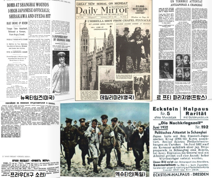 예컨대 영국의 <데일리 텔레그래프>는 “폭탄투척자는…1910년 일본의 조선합병후 조선독립운동에 가담해 테러행위에 적극 참가한 죽음을 두려워하지 않는 자들 가운데 한 명”(4월30일)이라고 전했습니다.