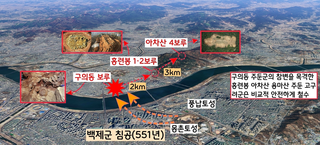 <삼국사기와 <일본서기>는 “551년 백제 성왕이 나제연합군을 이끌고 고구려를 공격해서 한성을 비롯, 옛 땅 6군을 회복했다”고 했다. 구의동 보루 등 한강 유역의 고구려 보루가 이때 백제군의 공격을 받았을 것이다.