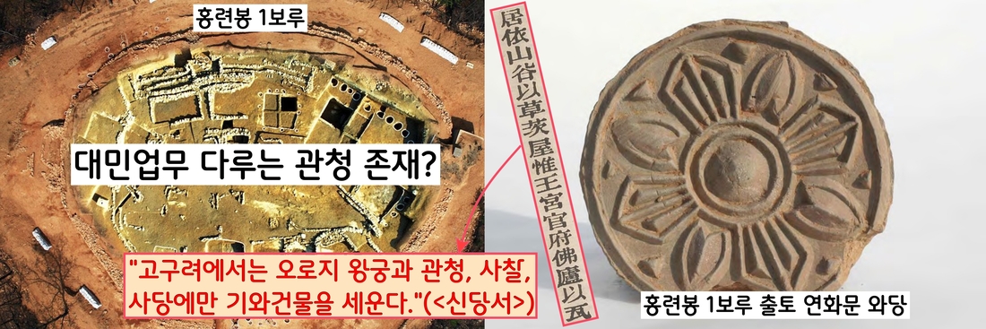 홍련봉 1보루에서는 연화문 와당 6점을 비롯, 각종 기와가 다량 확인됐다. <신당서> 등은 “고구려에서는 왕궁과 관청, 사찰, 사당 등에만 기와를 쓴다”고 했다. 홍련봉 1보루에는 대민(對民) 업무를 담당하는 행정관청도 존재했을 것으로 추정된다.